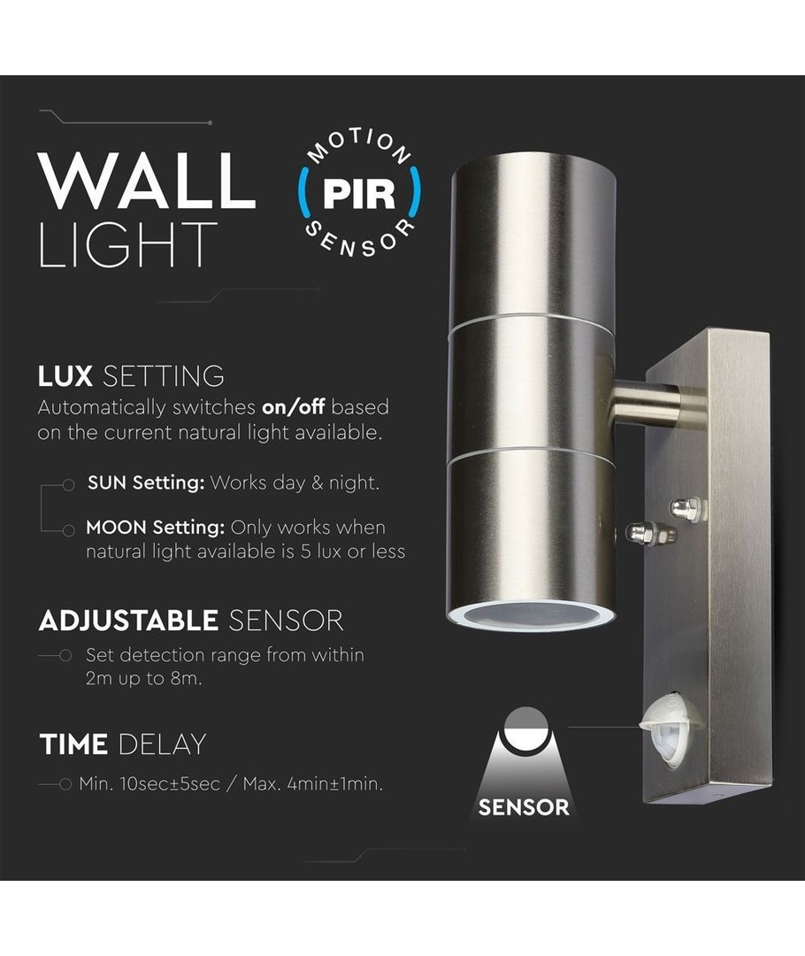 De wandlamp is uitgerust met een bewegingssensor, waardoor de lamp zeer energiezuinig is omdat hij alleen brandt wanneer beweging wordt gedetecteerd. Dit is niet alleen praktisch, maar biedt ook extra veiligheid doordat het gebied automatisch wordt verlicht bij activiteit.