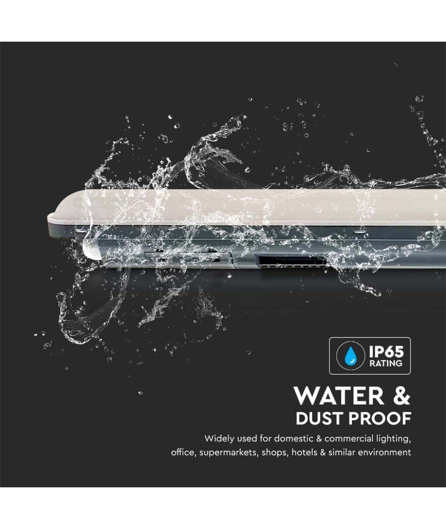 Deze waterdichte 48W complete LED armatuur van V-Tac is de ideale keuze voor wie zowel duurzaamheid als efficiëntie zoekt in hun verlichtingsoplossingen. Met een lengte van 150 cm en een lichtsterkte van 5760 lumen, biedt dit apparaat een krachtige lichtbeleving met een indrukwekkende lichtopbrengst van 120lm/W.