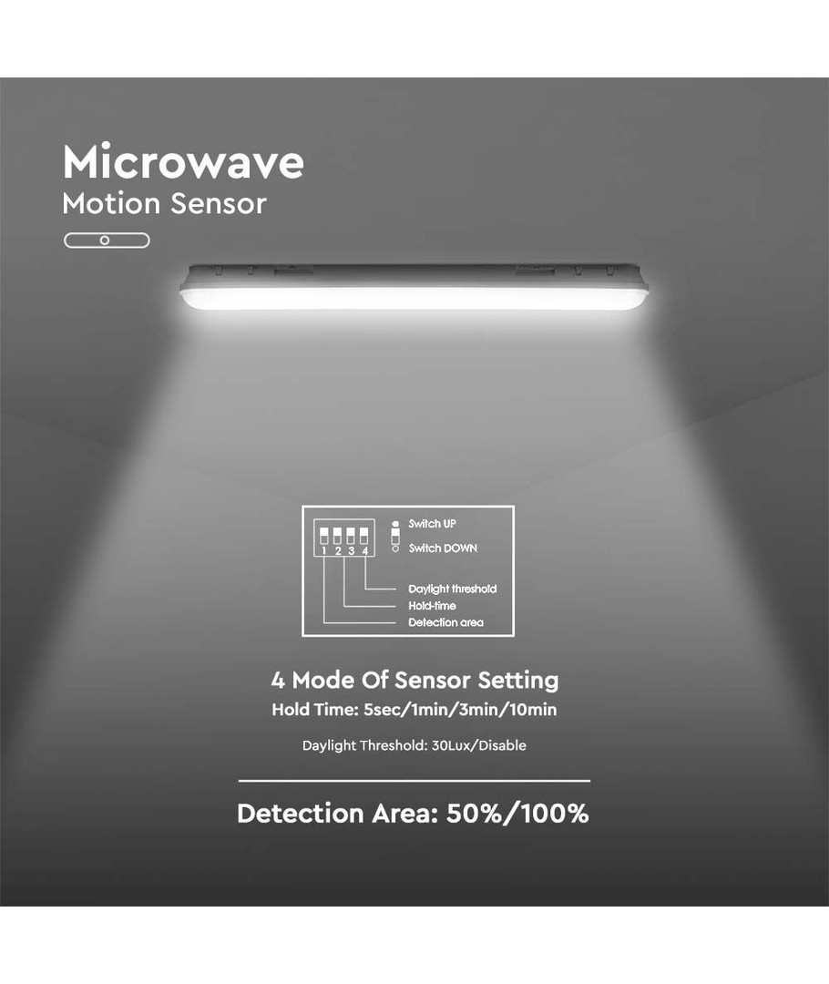 | Aanvullende opmerkingen | Light-on duration: 5s, 1min, 3min, 10min. Sensor type: Microwave Sensor. Sensor distance: 50%/100%. Ambient light level: 30 Lux/Disable. |