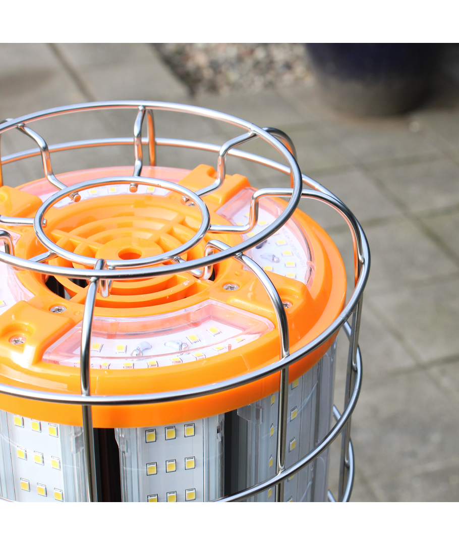 De robuuste constructie met beschermend metalen rooster maakt de lamp ideaal voor bouwplaatsen, werkplaatsen en andere veeleisende omgevingen.