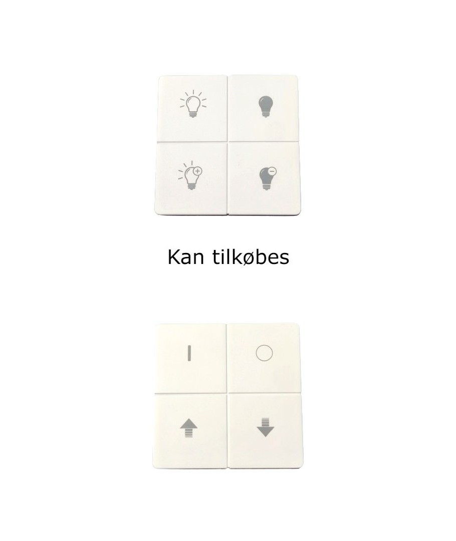 De schakelaar heeft 4 knoppen waarmee je het licht in verschillende groepen of ruimtes kunt bedienen. Je kunt het licht aan-, uitzetten of dimmen, afhankelijk van je behoeften. En als je wat extra persoonlijkheid aan je toetsen wilt toevoegen, kun je toetsen met verschillende symbolen aanschaffen, bijvoorbeeld lampjes of andere iconen.