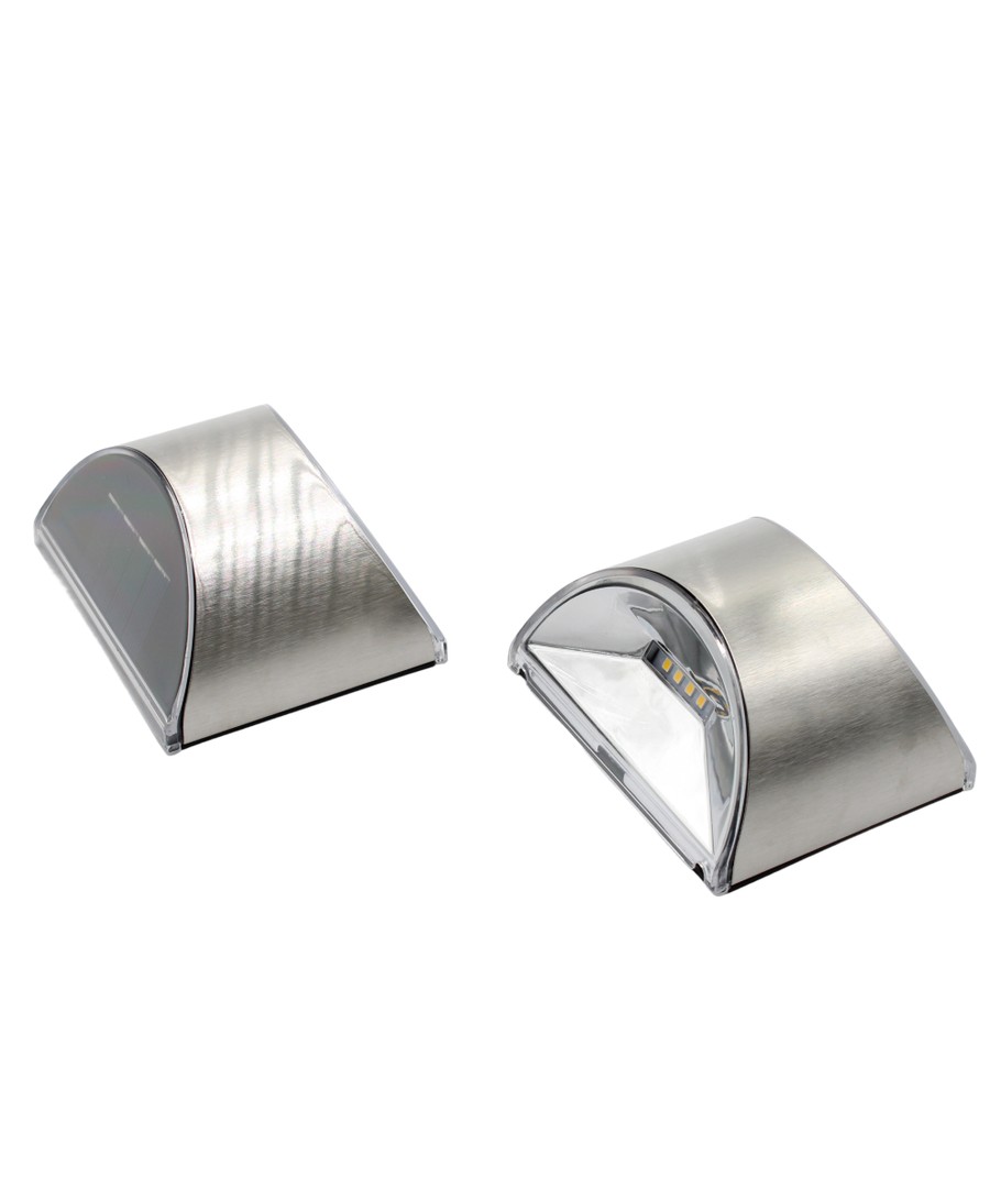 Ontdek de efficiënte en stijlvolle 2 stuks MIVO Zonnecel wandlampen LED in zilver, die een mooie wand-effect en functionaliteit combineren voor je buitenverlichting.
