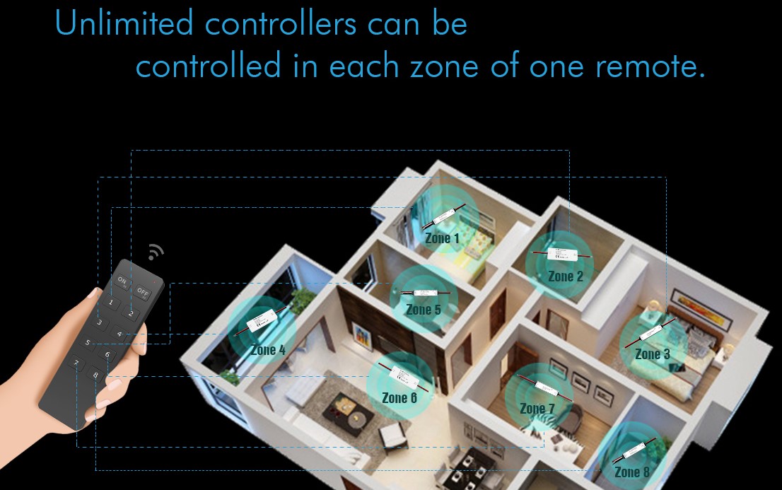 Styr 12V, 24V, 230V og dimming, CCT, RGB - alt med samme fjernkontroll.