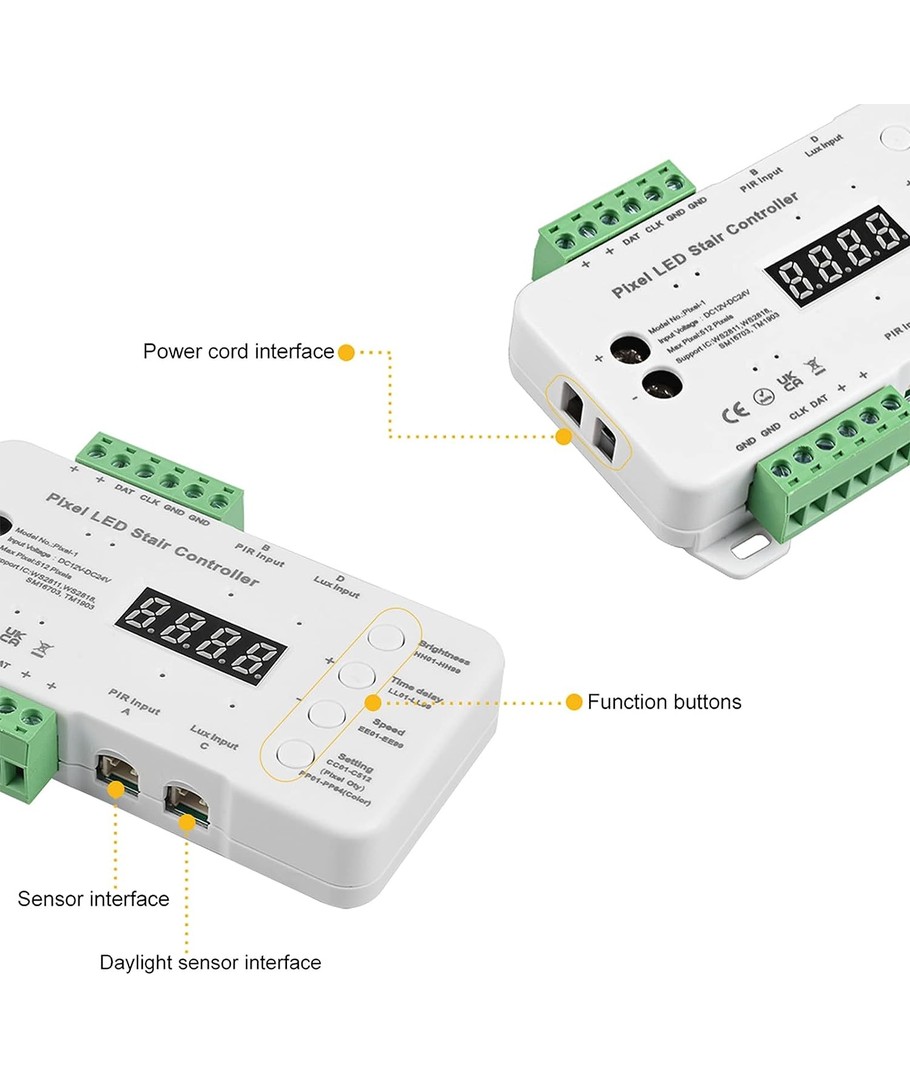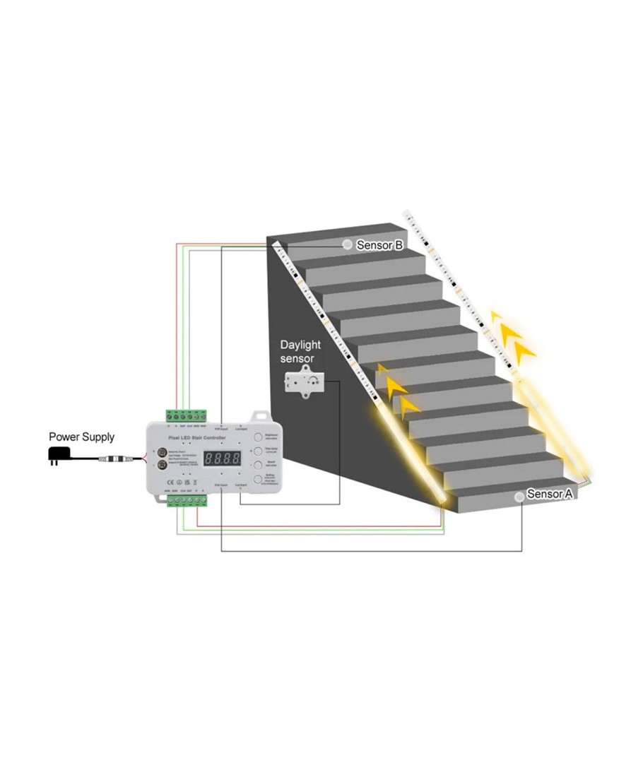 Dette intelligente styringssenteret gir deg full kontroll over din trappebelysning. Tilpass belysningsmønstre og lysstyrke enkelt.