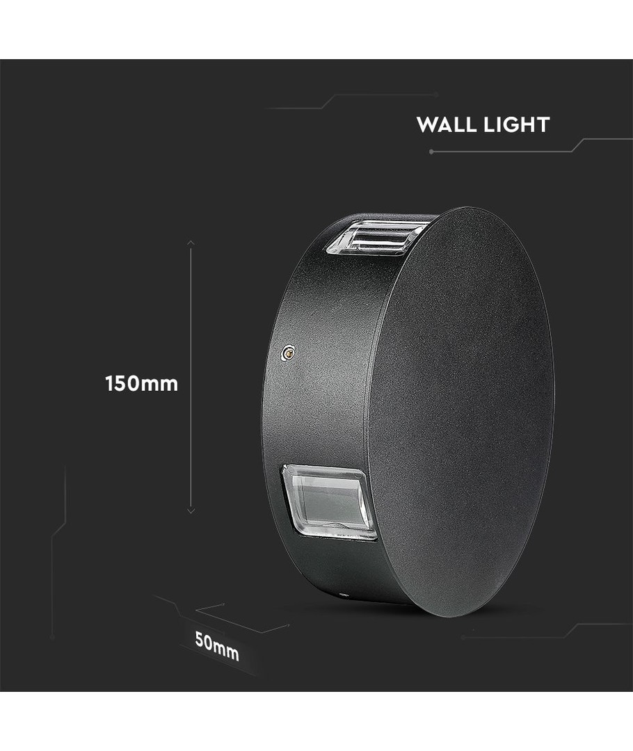 Med sitt elegante sortmalte hus og runde design, passer denne vegglampen perfekt i enhver stil eller innredning, enten det er for innendørs eller utendørs belysning. Skap stemningen du ønsker, uansett behov eller anledning.