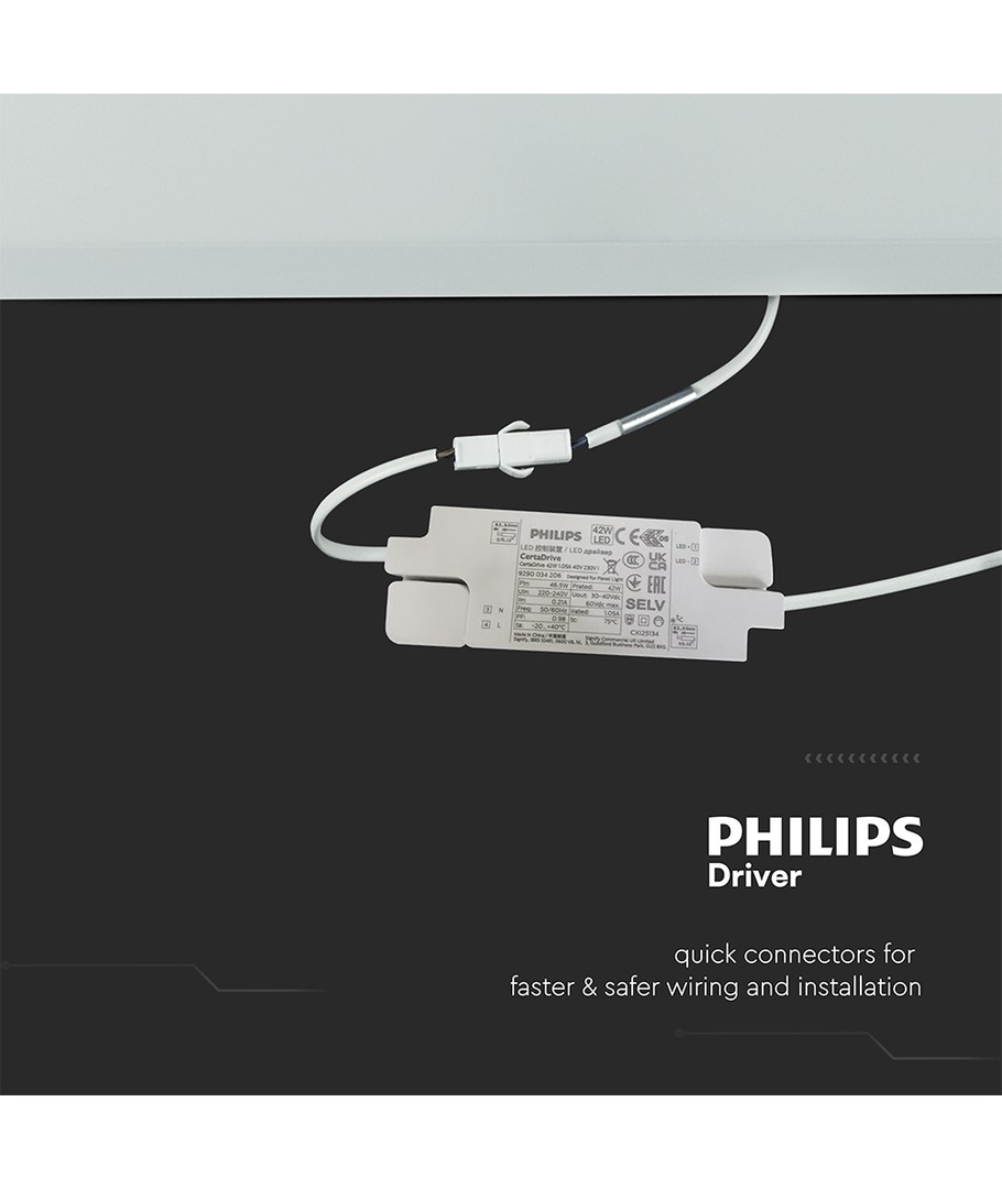 Dette panelet bruker høykvalitets LED som sikrer en stabil og energieffektiv ytelse over tid. Med en pålitelig Philips driver og god kjøling, kan du være trygg på en lang og sikker drift.