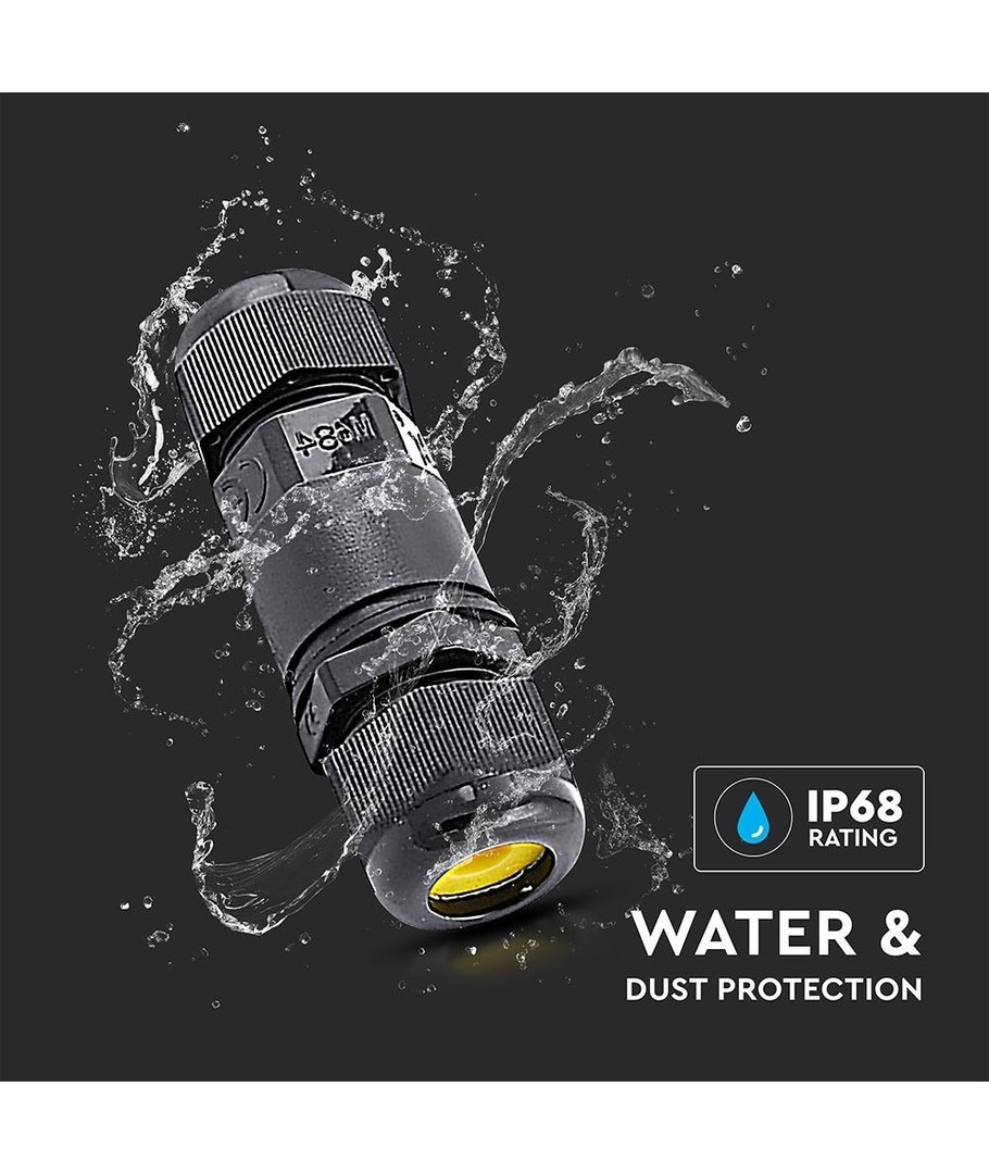 Med sin enkle installeringsprosess kan brukeren raskt montere boksen og være trygg på at elektrisiteten administreres på en sikker måte. Investér i V-Tac’s svarte runde koblingsboks for å sikre en trygg og stabil elektrisk tilkobling i både våte og tørre miljøer.