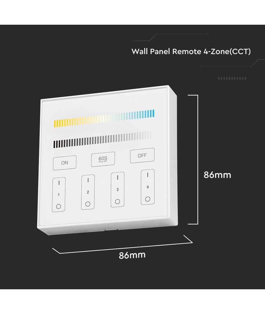 86x86mm, hvit, 4 soner, dimbar, RF 2.4GHz