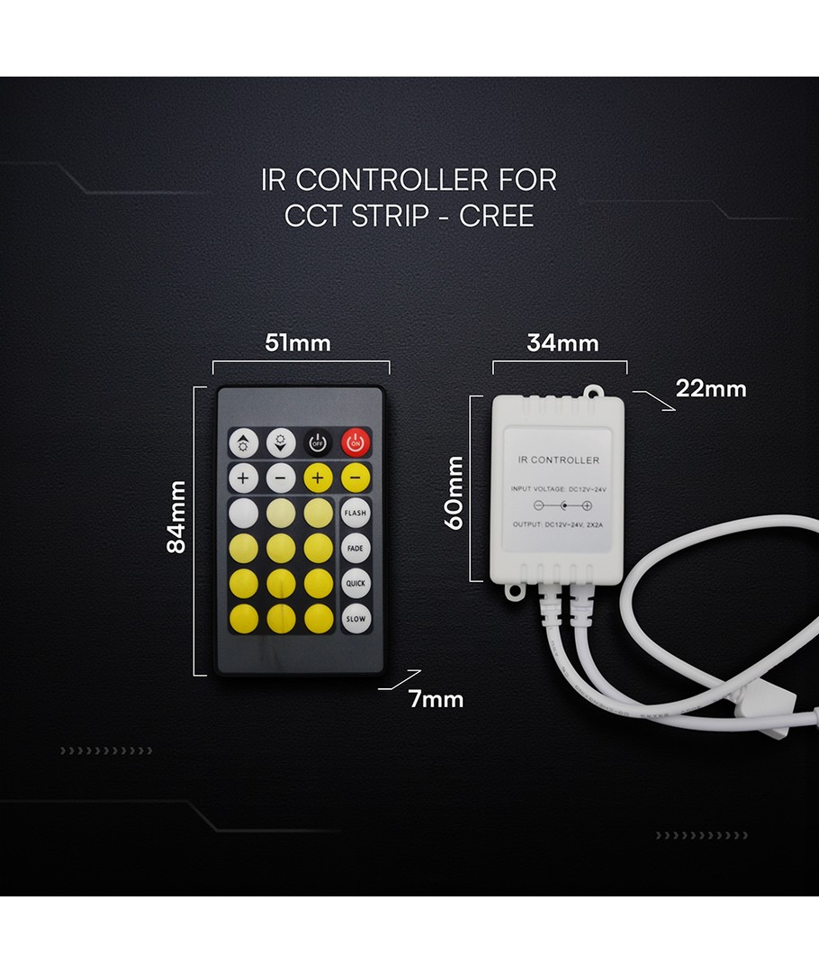 12V-24V, 6A, 24 knapper, til 3-i-1 LED strips