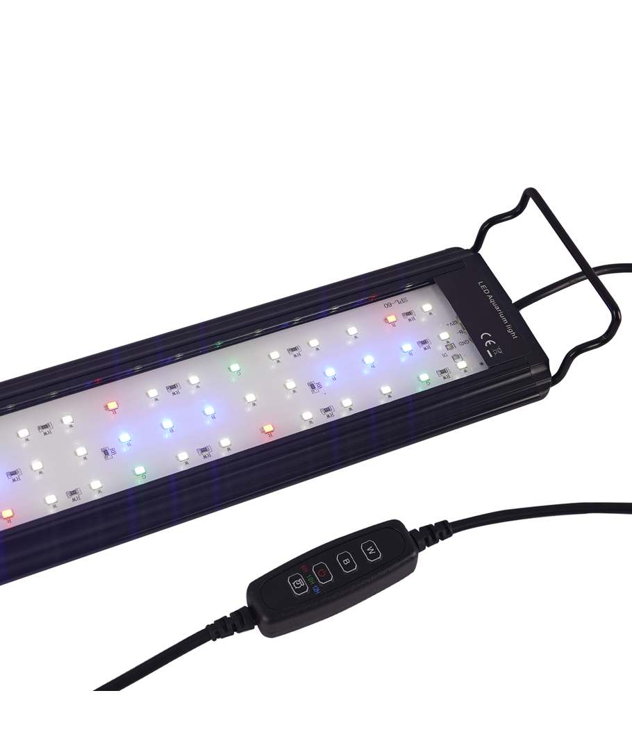 Armaturet har et flerfarget lys som inkluderer hvit, blå, rød, og grønn belysning, noe som skaper et levende og dynamisk miljø i akvariet ditt. Den høye spredningen på 120 grader sørger for en jevn fordeling av lys, noe som er viktig for å sikre at alle deler av akvariet får nok lys.