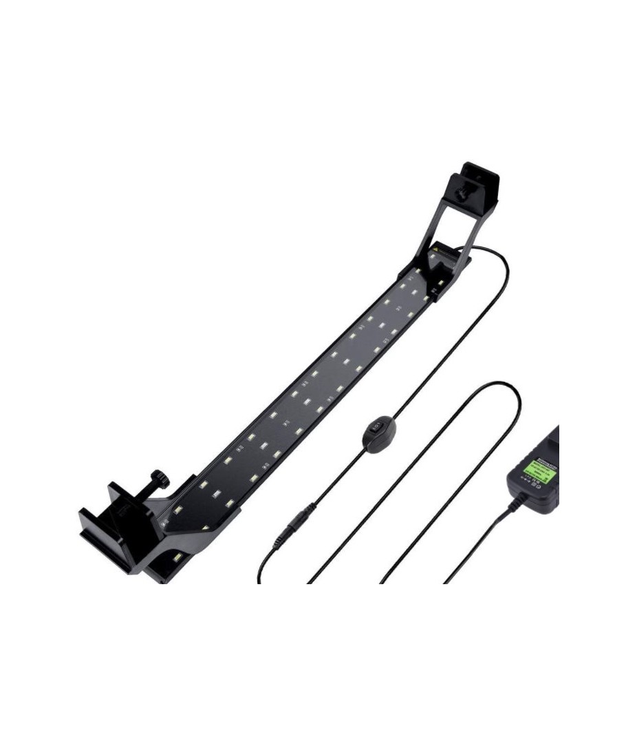 Designet med fleksibiliteten i tankene, kommer denne armaturen med en justerbar størrelse på 73-93 cm. Dette gjør den perfekt for ulike akvariestørrelser og sikrer en presis passform. Ikke bare monteres den enkelt, men den tilbyr også en pålitelig lyskilde som enkelt kan integreres uansett akvariets opprinnelige oppsett.