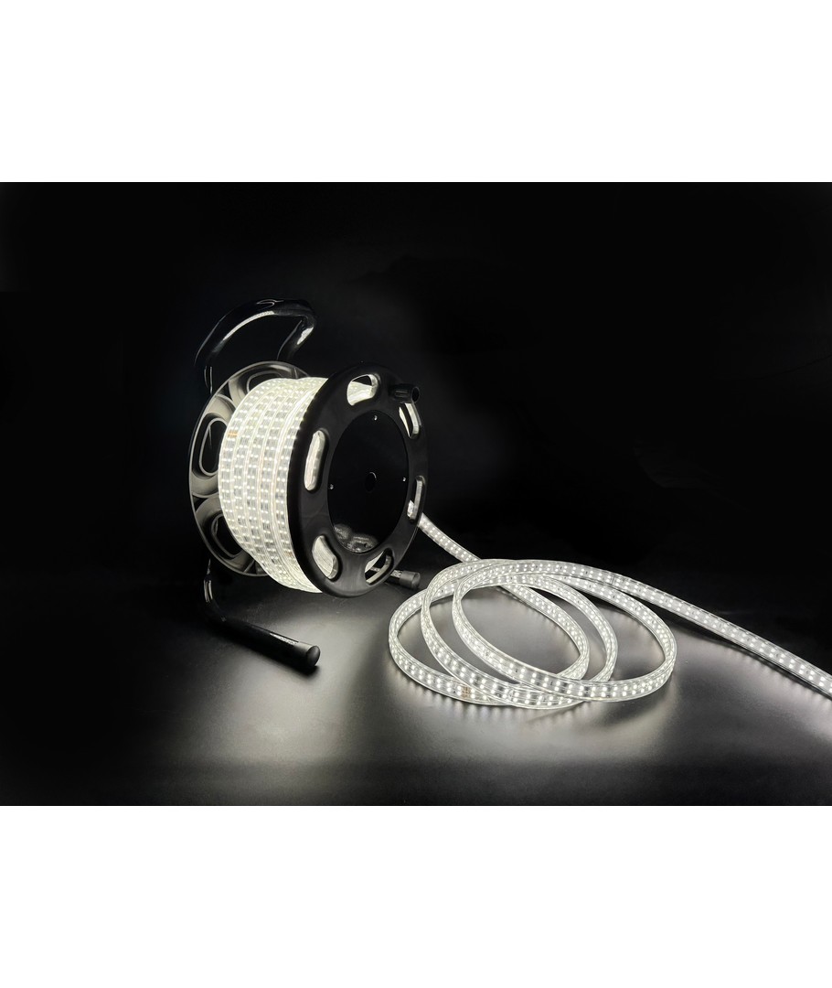 Opplev førsteklasses belysning med vår 50 meter lange, 360° LED strip på trommel. Denne kraftige lyskilden, med en effekt på hele 600W, sikrer et lys som er både intensivt og jevnt fordelt.