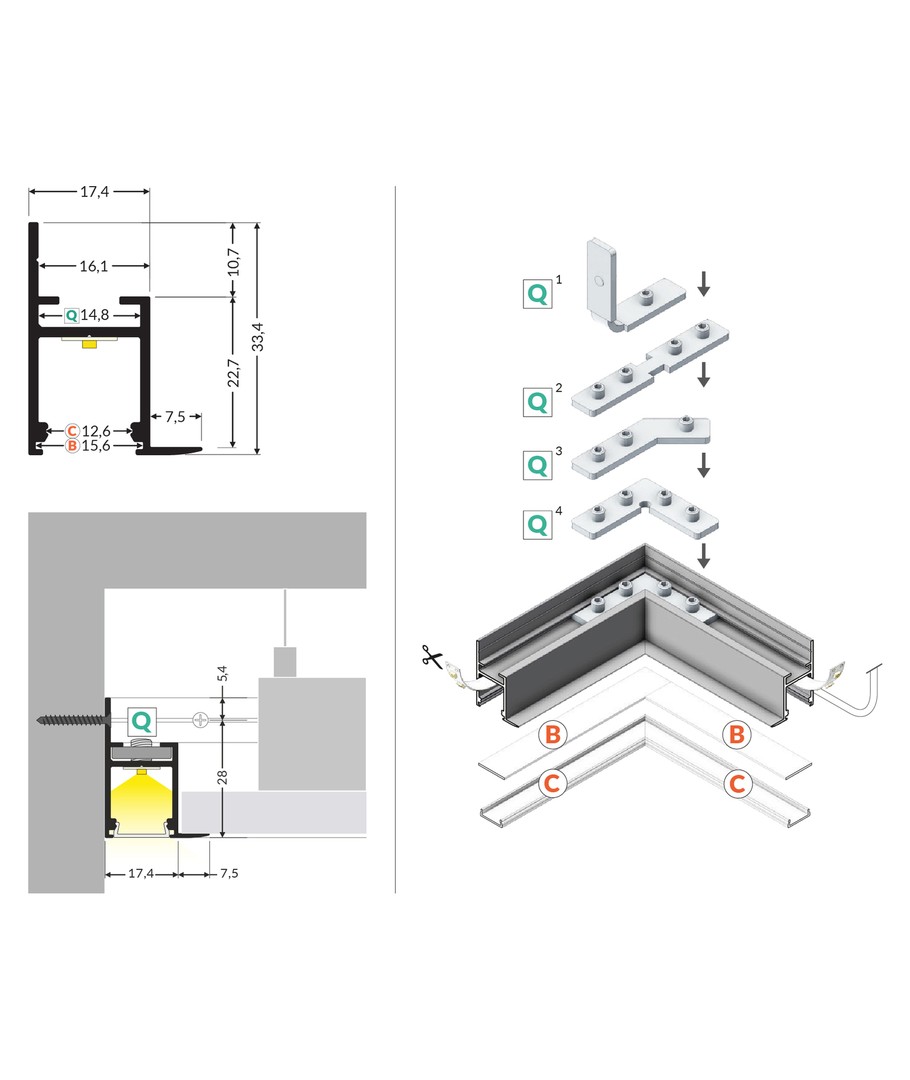 Ubehandlet aluminium, innfelling, LED skinne