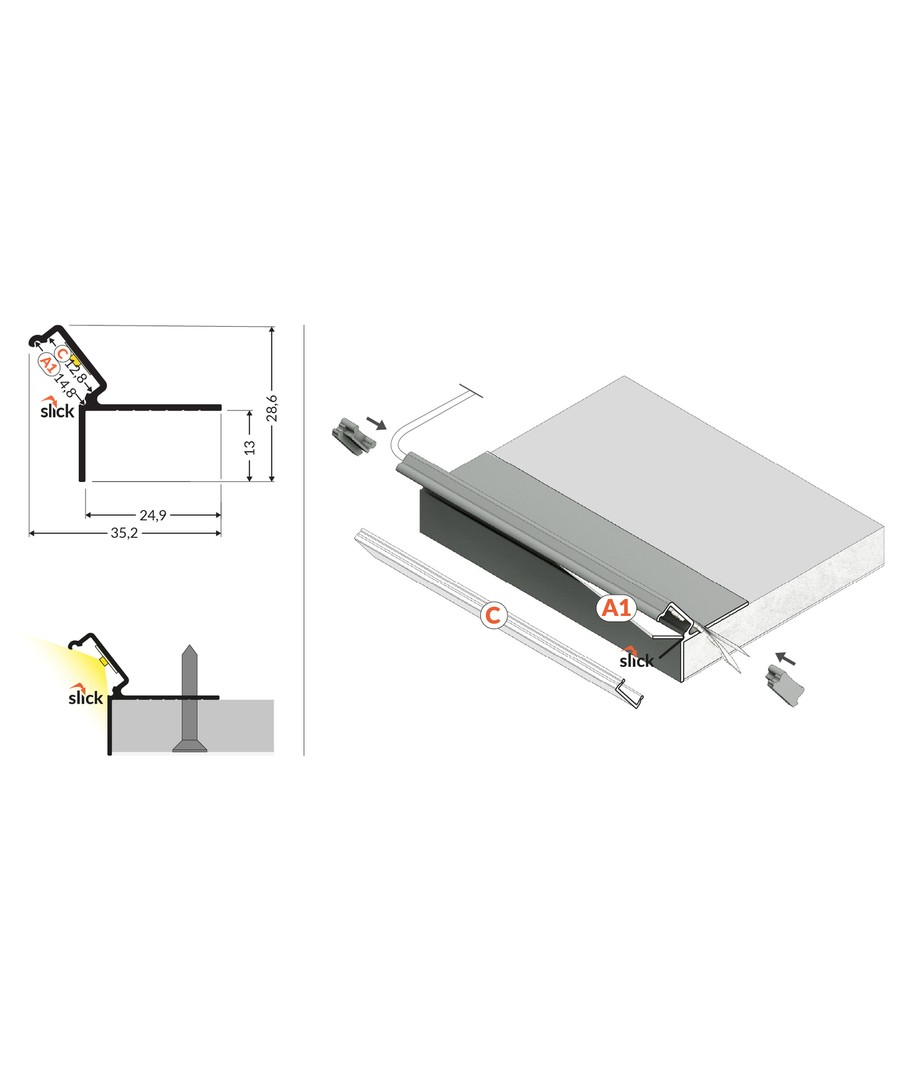 2m aluprofil GLOW12 DOWN A1C - Anodisert er en LED skinne designet til innsparkling.