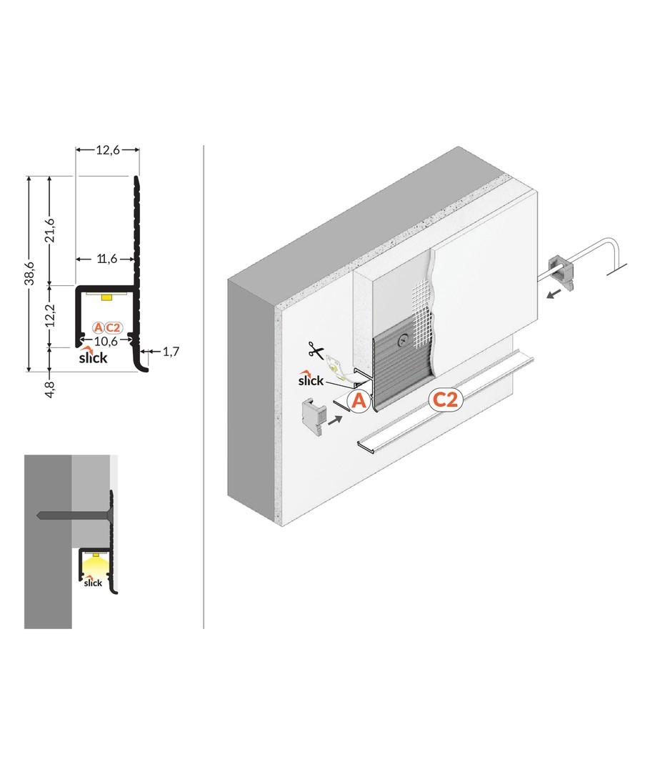 2m aluprofil OMNI10 AC2 - Anodisert er en effektiv og praktisk LED skinne til innsparkling.