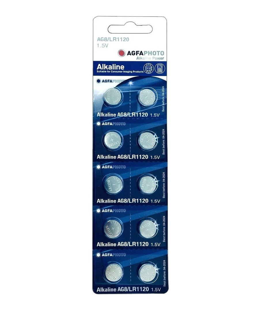 LR55/AG8 10-pak AgfaPhoto knappebatteri - Alkaline, 1,5V Utvid
