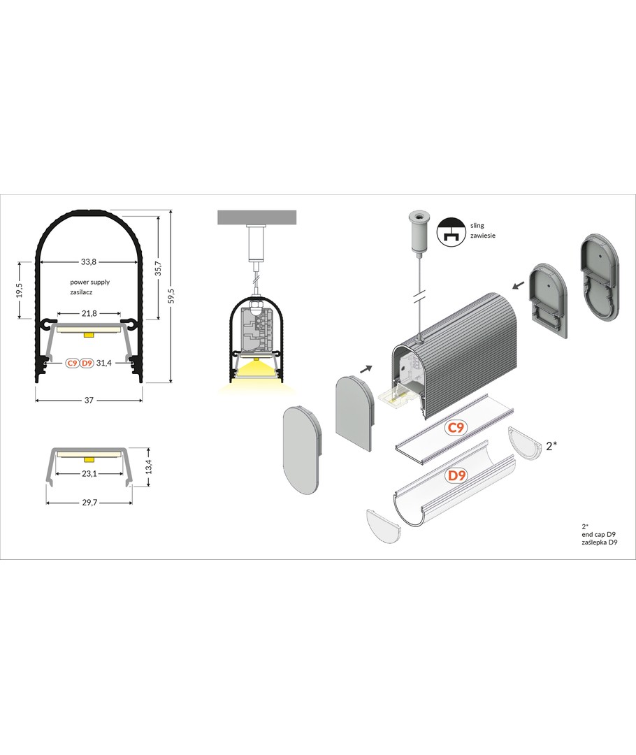 Anodisert, påbygging, LED-skinne