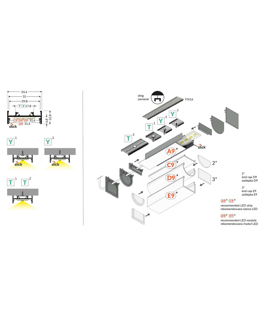 Anodisert, påbygging, LED skinne