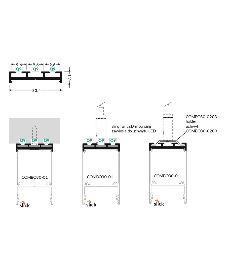 2m tilbehørsprofil COMBO30-02 Q9 er en sort anodisert aluprofil, designet for optimal tilpasning med LED løsninger.