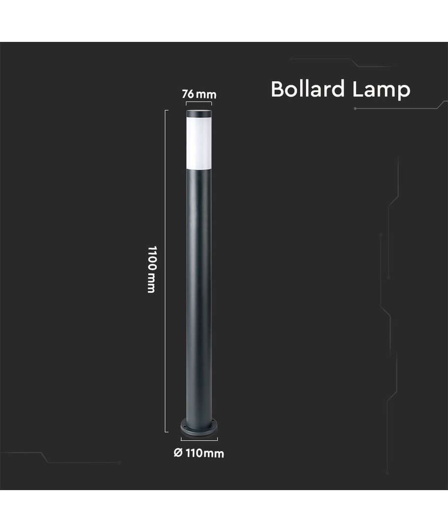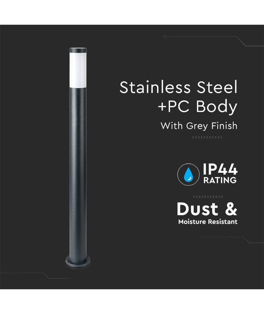 V-Tac Grå hage lampe er en stilfull og robust utendørs lampe, designet for å tilføre både funksjonalitet og estetikk til hagen din med dens moderne rustfrie stål finish.