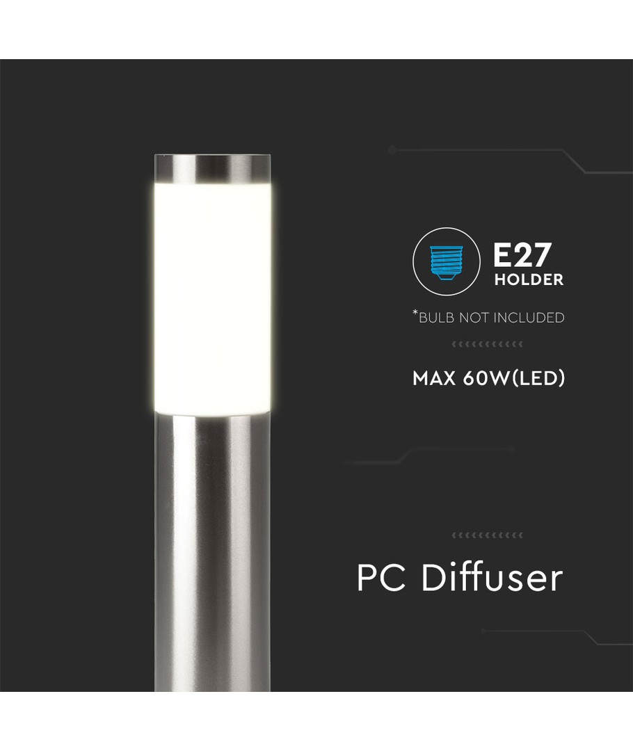 E27 sokkel, IP44, rustfritt stål, grå, uten lyskilde