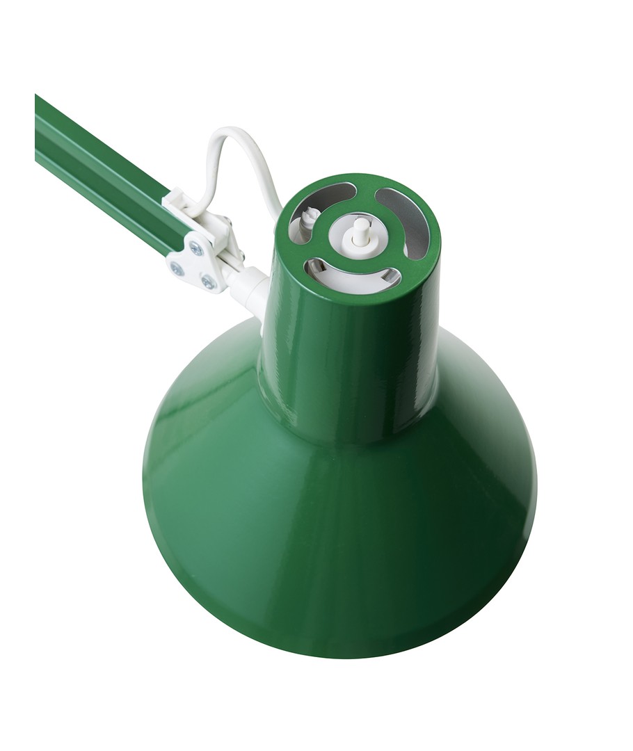 Jensen arkitektlampe i grønn fra Nielsen Light er den originale, klassiske arkitektlampen med 4 kraftige fjærer og hode i ett stykke metall. Lampen leveres inkludert bordklemme og veggbrakett, slik at den er enkel å montere på skrivebordet eller på en vegg.