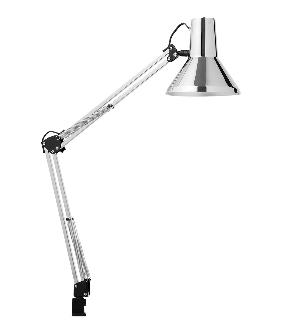 Jensen arkitektlampe i krom fra Nielsen Light er den originale, klassiske arkitektlampen med 4 kraftige fjærer og hode i ett stykke metall. Lampen leveres inkludert bordklemme og veggbrakett, slik at den er enkel å montere på skrivebordet eller på en vegg.
