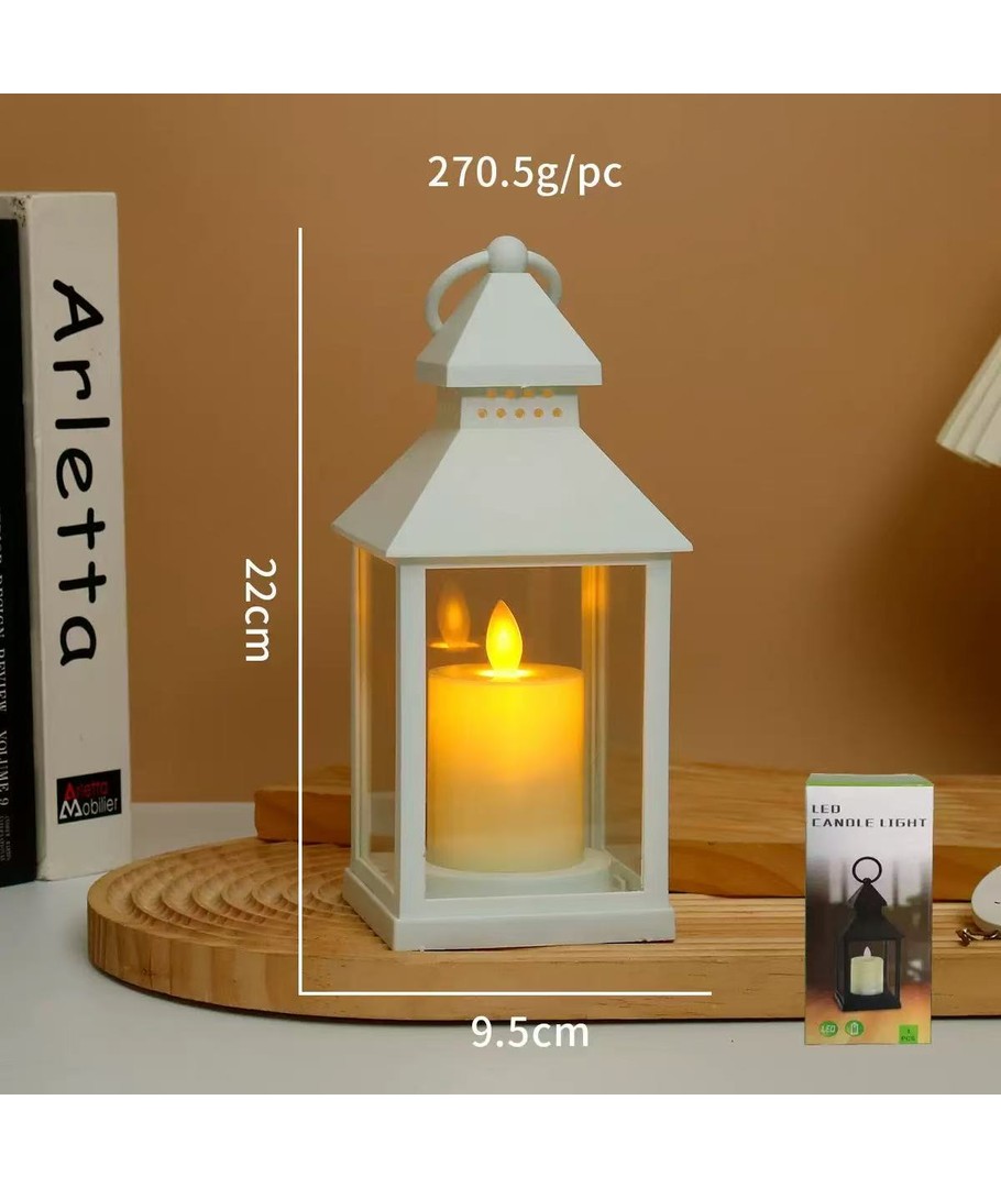 LED lanterne med flammeeffekt i hvit til både innendørs og utendørs bruk.