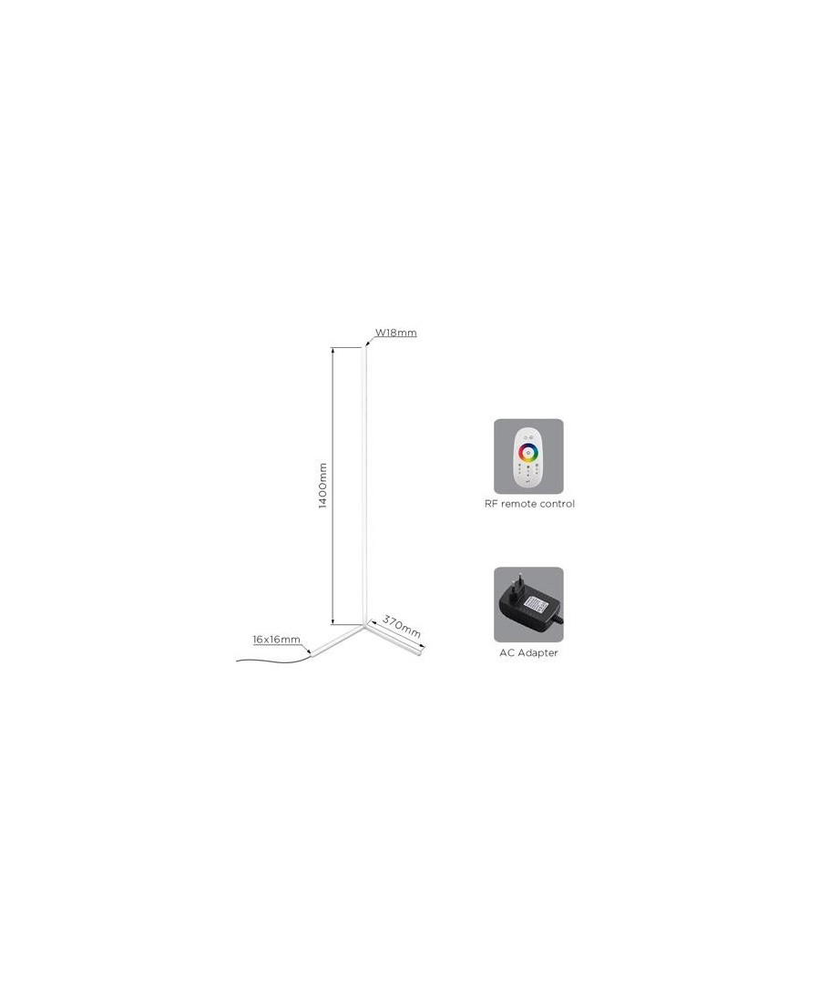 Hjørnelampen kommer med en medfølgende fjernkontroll, som gjør det enkelt å skifte mellom ulike RGB-farger og tilpasse belysningen etter ditt humør og behov. Juster fargene for å fremheve rommets eksisterende interiør eller sett en helt ny stemning med denne brukervennlige funksjonen.