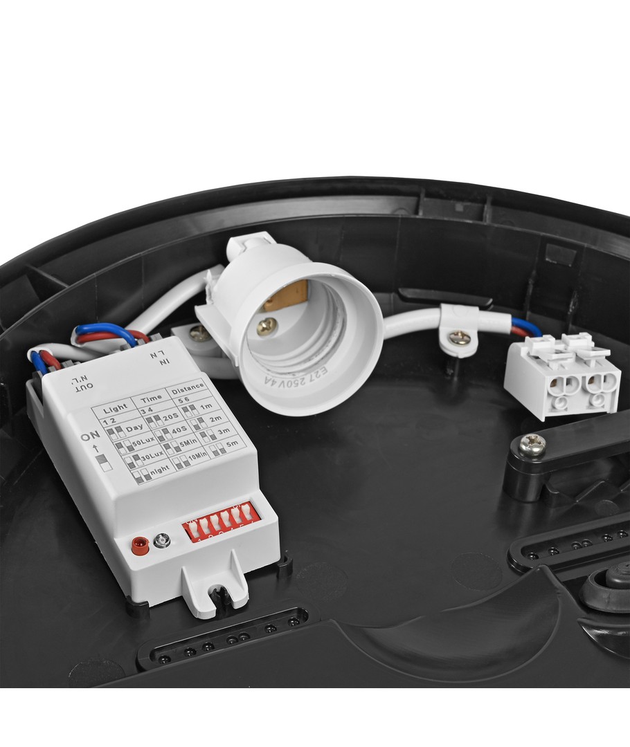 | Yderligere bemærkninger | Connection Type: Terminal block. Sensor type: Microwave. Sensor detection angle: 360°. Sensor time delay: 20 s - 10 min. Sensor detection distance: 1 - 5 m. Sensor light threshold: 10-50 Lx. |