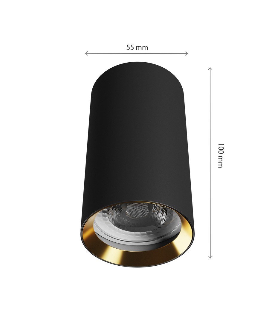 Sort, sylinderformet, IP20, aluminium, uten lyskilde