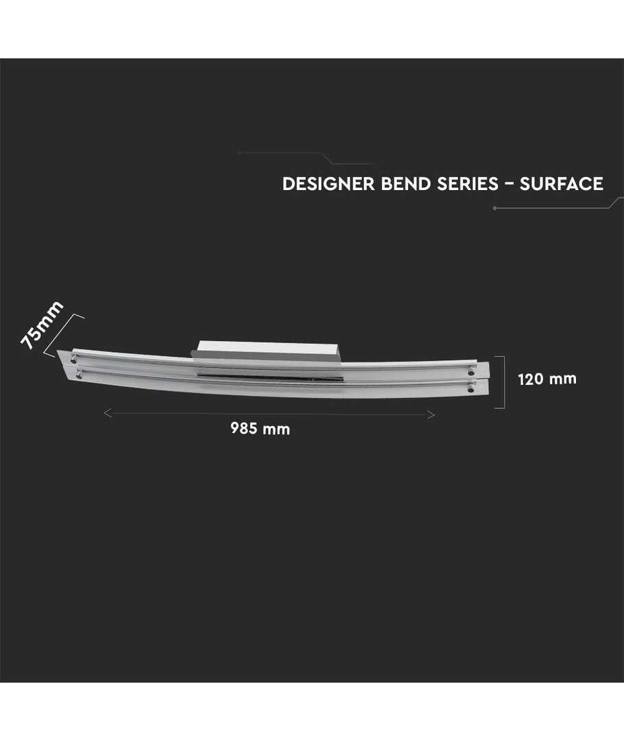 Med dimensjoner på 985 x 75 x 120 mm, passer lampen godt inn i større rom, samtidig som den tilbyr en slank profil. Det integrerte designet med dobbel glasskonstruksjon i krom gir både styrke og en elegant estetikk.