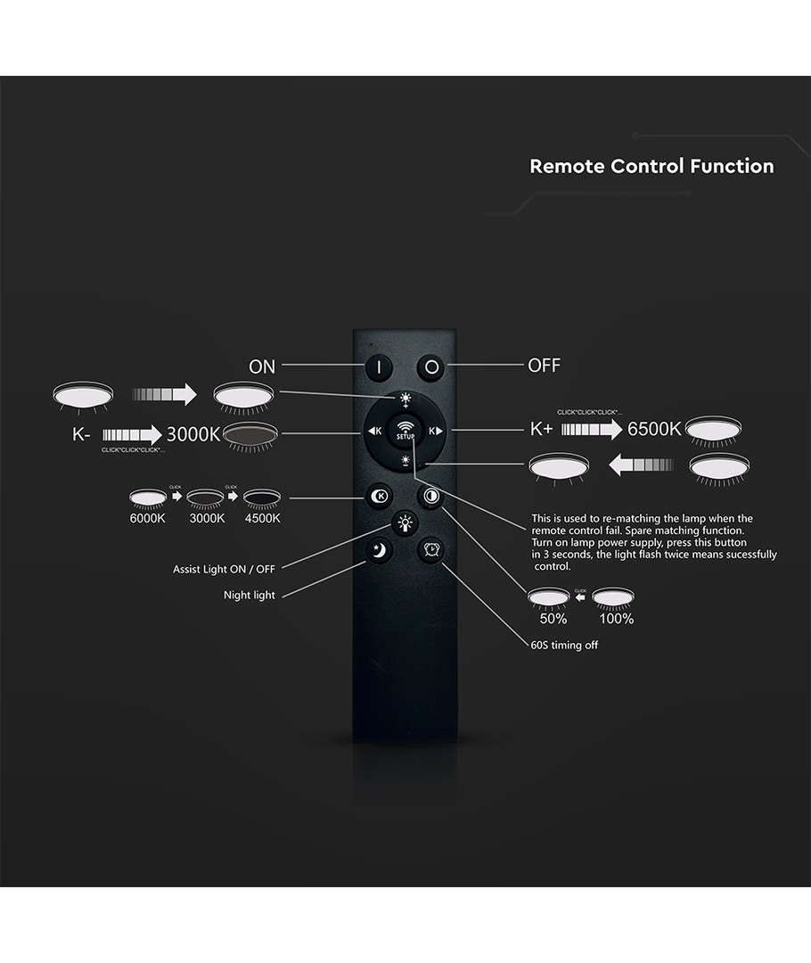 For din komfort kommer lampen med en 2.4G RF fjernkontroll. Dette lar deg enkelt justere belysningen etter dine behov, uten å måtte reise deg fra sofaen. Fjernkontrollen gir deg muligheten til å skape den perfekte stemningen, med bare et trykk.