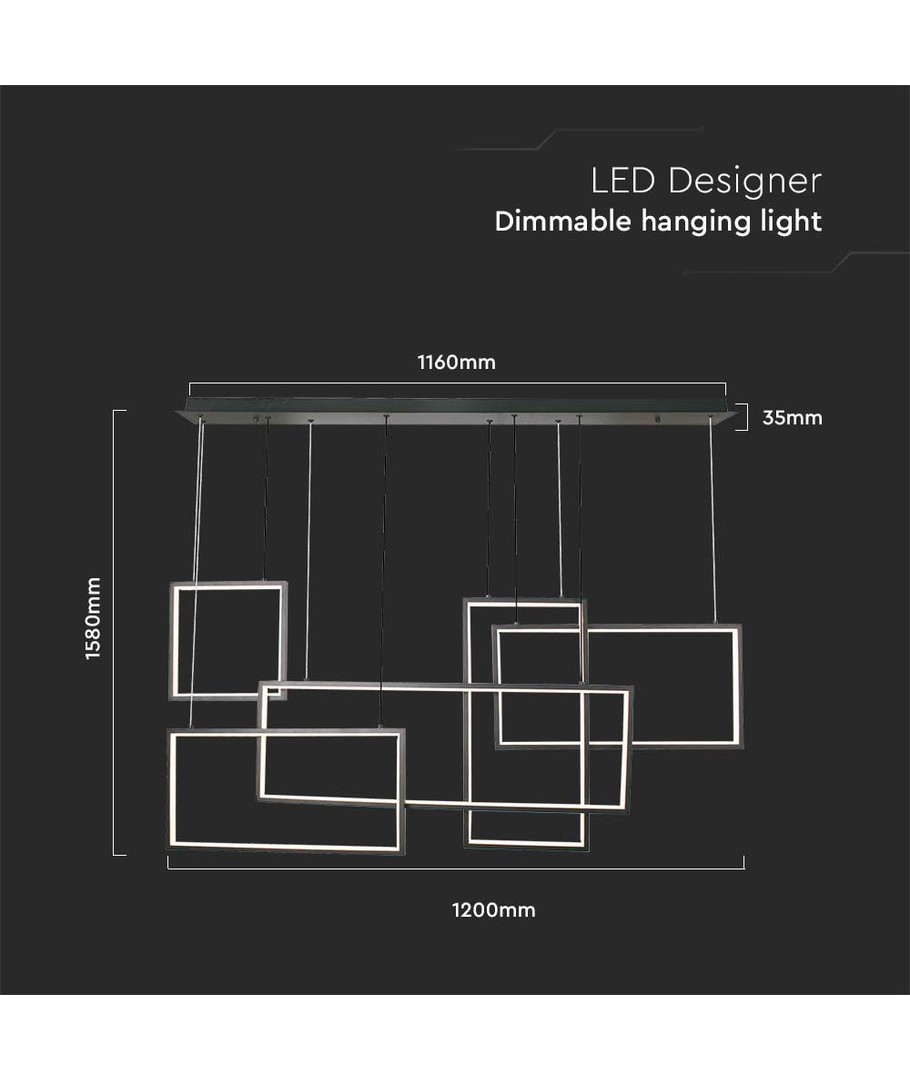 Med sin integrerte lyskilde er denne LED Hengende Lampen lett å installere, noe som gjør den både praktisk og stilren. Til tross for sin effektive lysstyrke og store dimensjon på 1580 x 1200 mm, opprettholder den en lav profil, perfekt for enhver innredning.