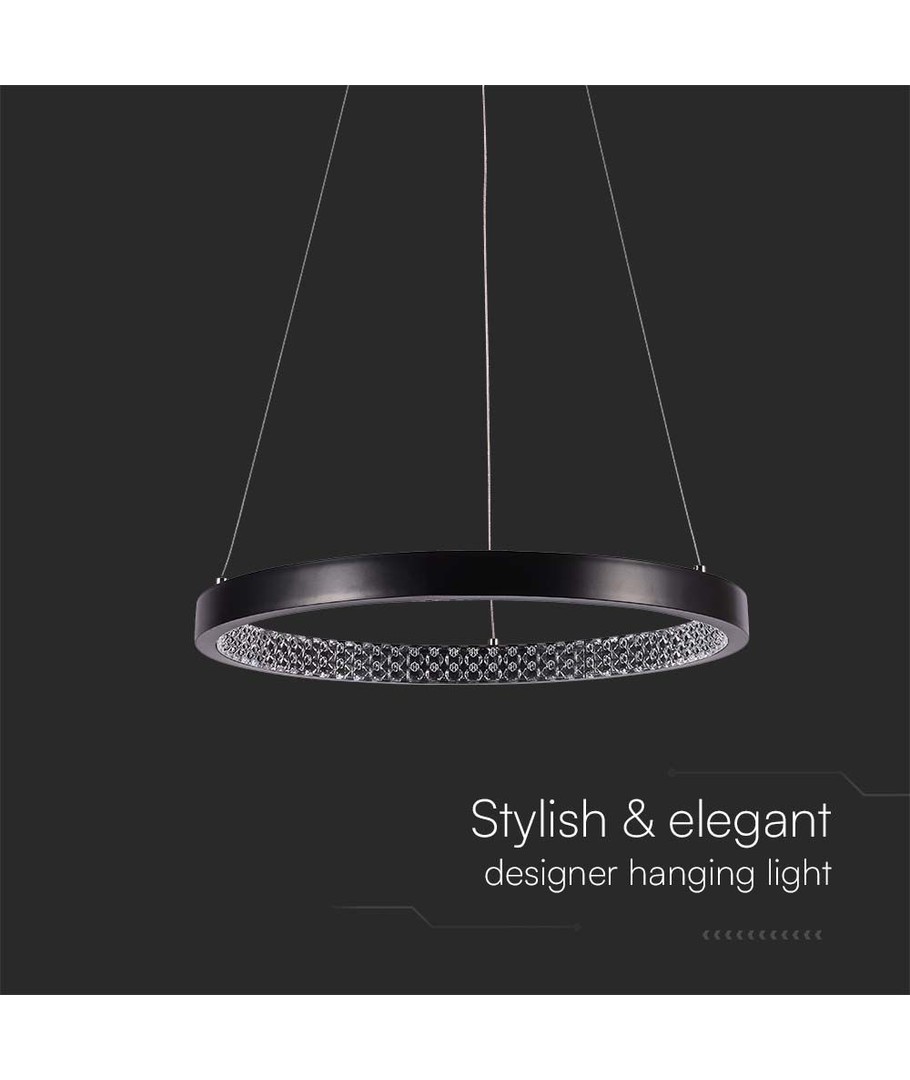 Den attraktive krystall akryl designen inni en stilig svart hus gjør lampen til et blikkfang i ethvert rom. Med målene 1080 x 400 mm, passer denne hengelampen godt over spisebordet, i stuen eller i møterom.