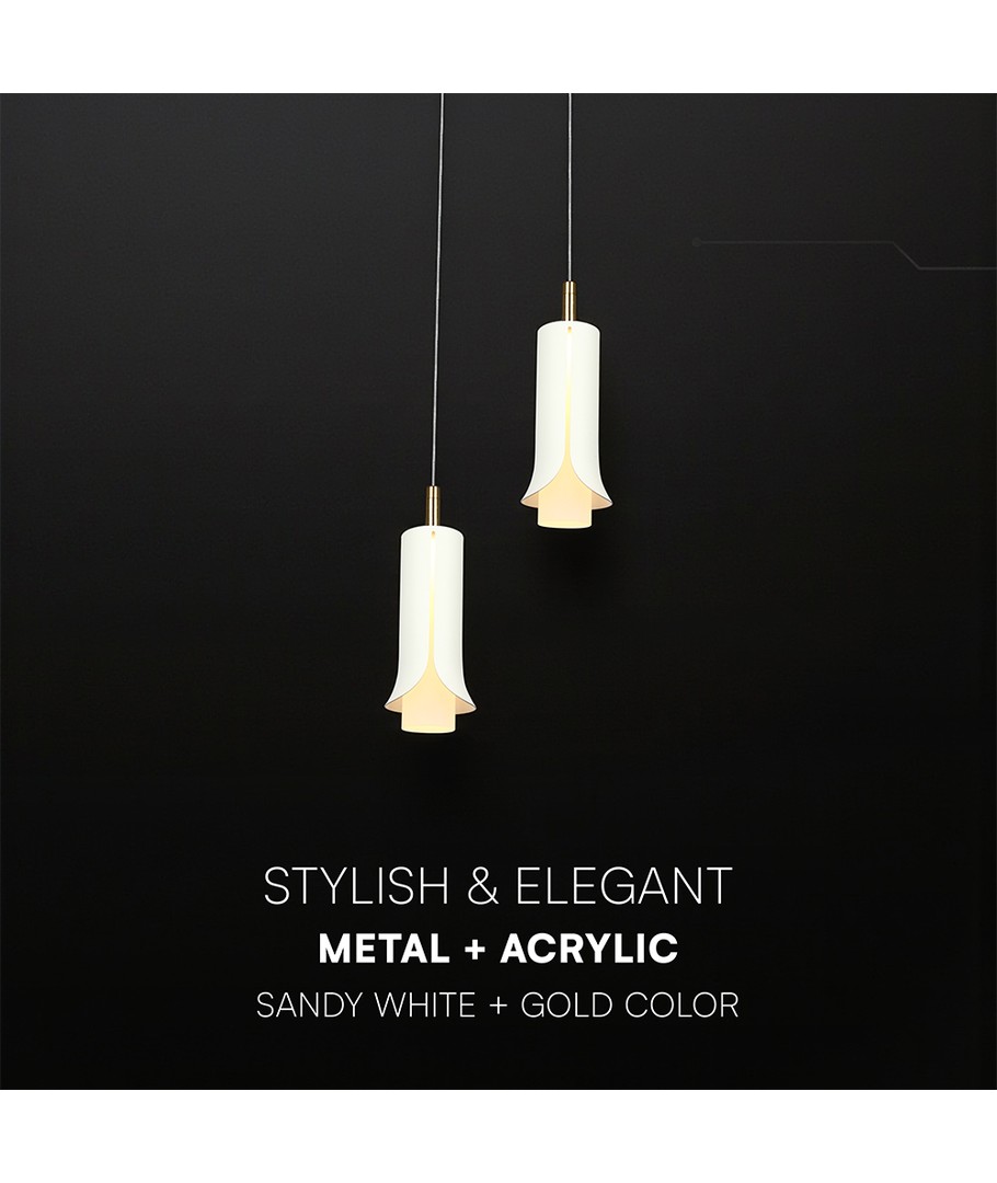 Oppgrader hjemmet ditt med vår stilfulle VT-89026 hengelampe, som er designet for å tilføre et moderne preg til ethvert rom. Med sitt unike design og harmoniske fargesammensetning av sandhvit og gull, fungerer denne lampen som både en praktisk lyskilde og et dekorativt element.
