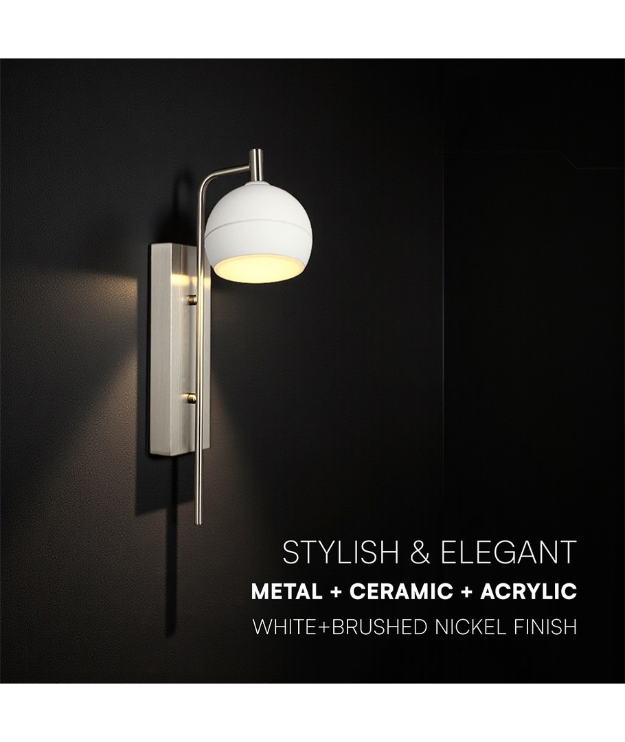Skap en innbydende atmosfære i hjemmet ditt med denne stilfulle vegglampen i børstet nikkel og hvit finish. Med sine dimensjoner på 430 x 120 x 190 mm, passer denne lampen perfekt inn i ethvert moderne interiør. Den dekorative utformingen gjør det enkelt å gi rommet et løft med minimalt med innsats.