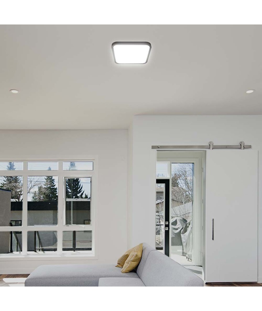 Med dimensjoner på 295 x 295 x 65 mm, passer lampen perfekt for de fleste rom og tilfører en trendy og funksjonell estetikk. Den integrerte lyskilden forenkler installasjonen og sikrer langvarig ytelse. Gjør ditt oppholdsrom mer levende og innbydende med denne allsidige LED-taklampen!