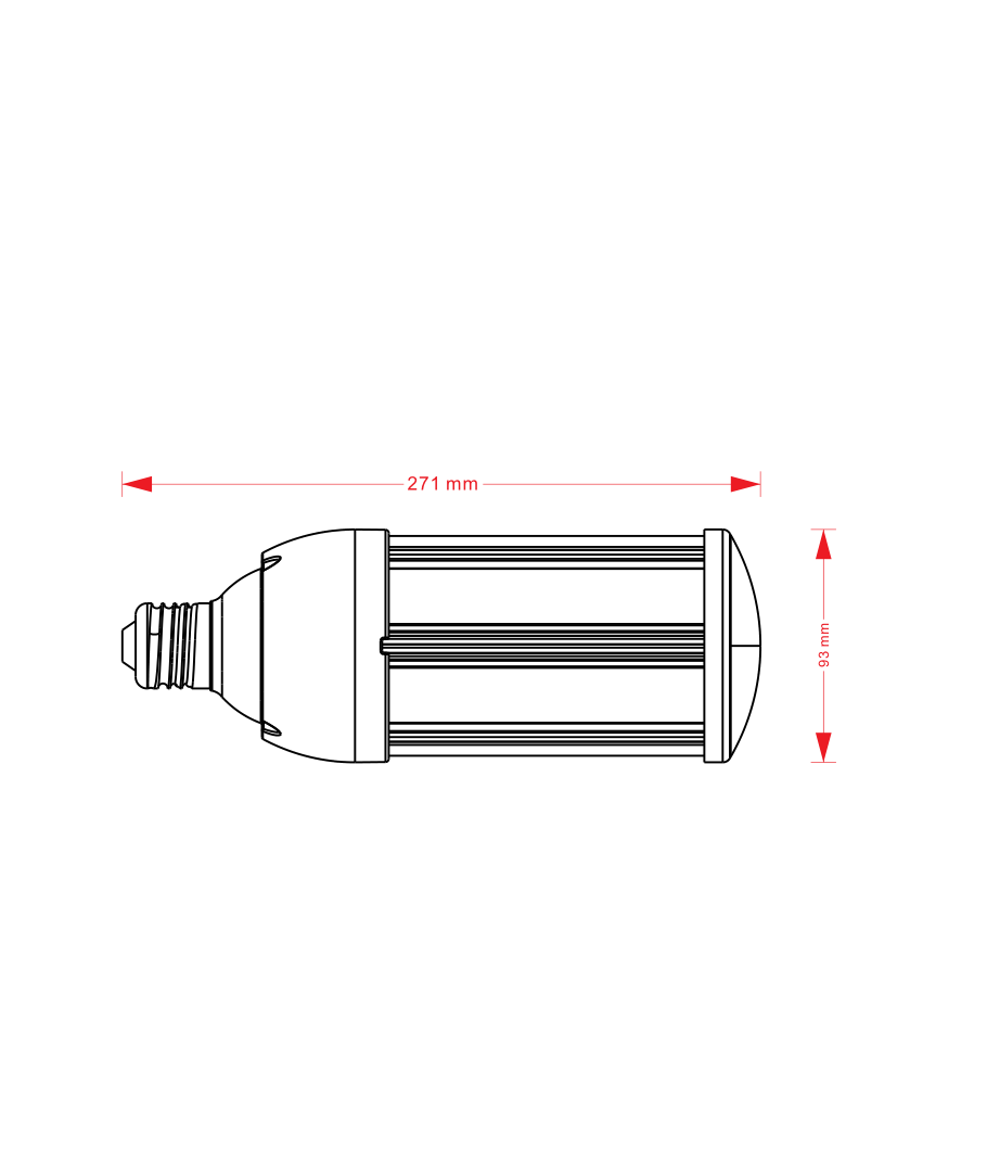 Den skal kobles til en 230V forsyning og gir fra seg en imponerende lysstrøm på 5400 lumen. Takket være en høy lysspredning på 360 grader sikrer denne LED-pæren en jevn og effektiv fordeling av lyset.