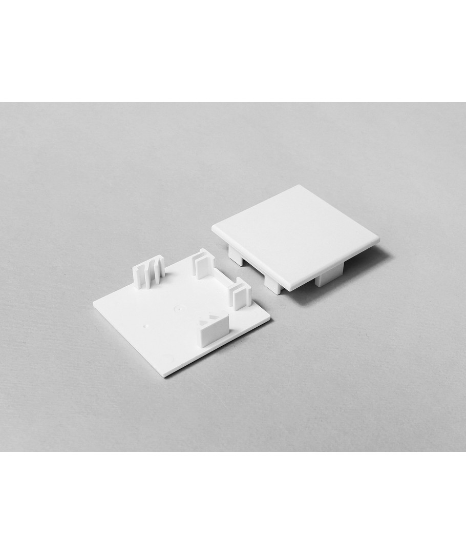 Endestykke PHIL53 i hvit farge, designet for å avslutte aluprofiler pent og sikkert.