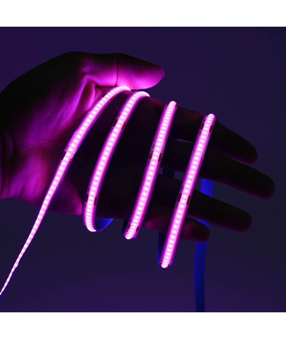 Ensfarget rosa COB LED strip med 320 LED-er per meter.