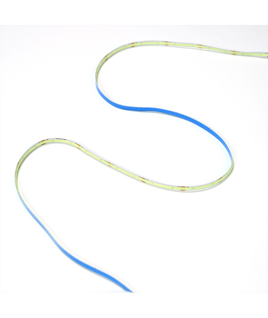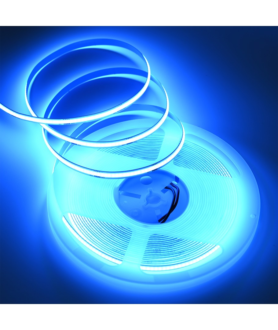 Enfarget lyseblå COB LED strip med 320 LED-er per meter.
