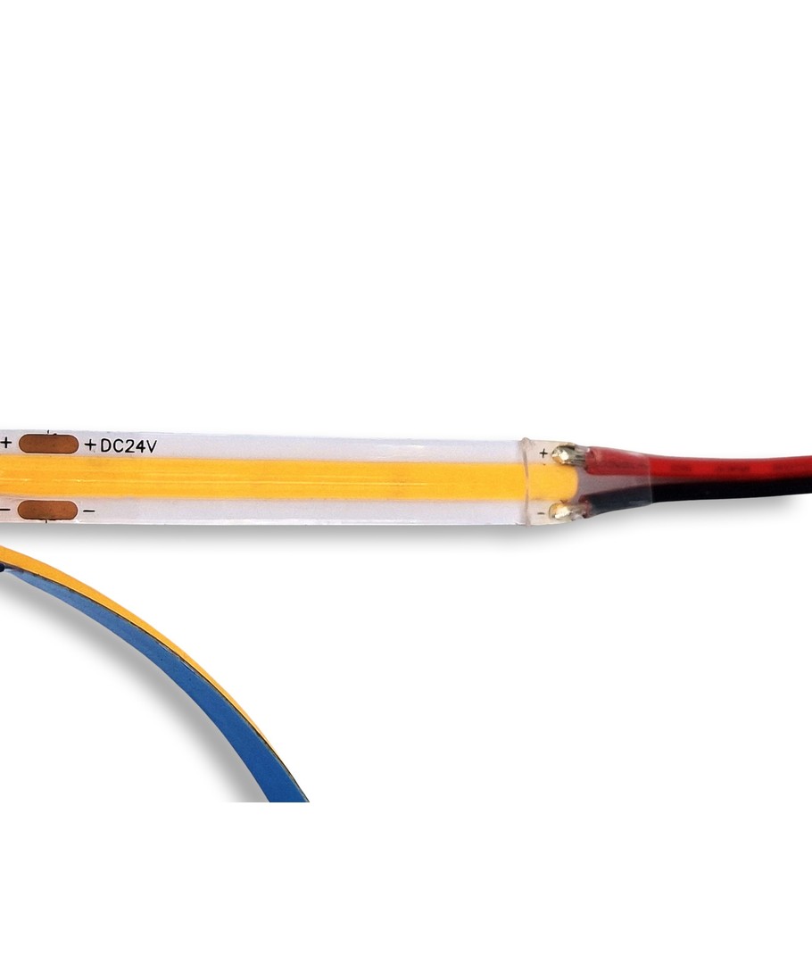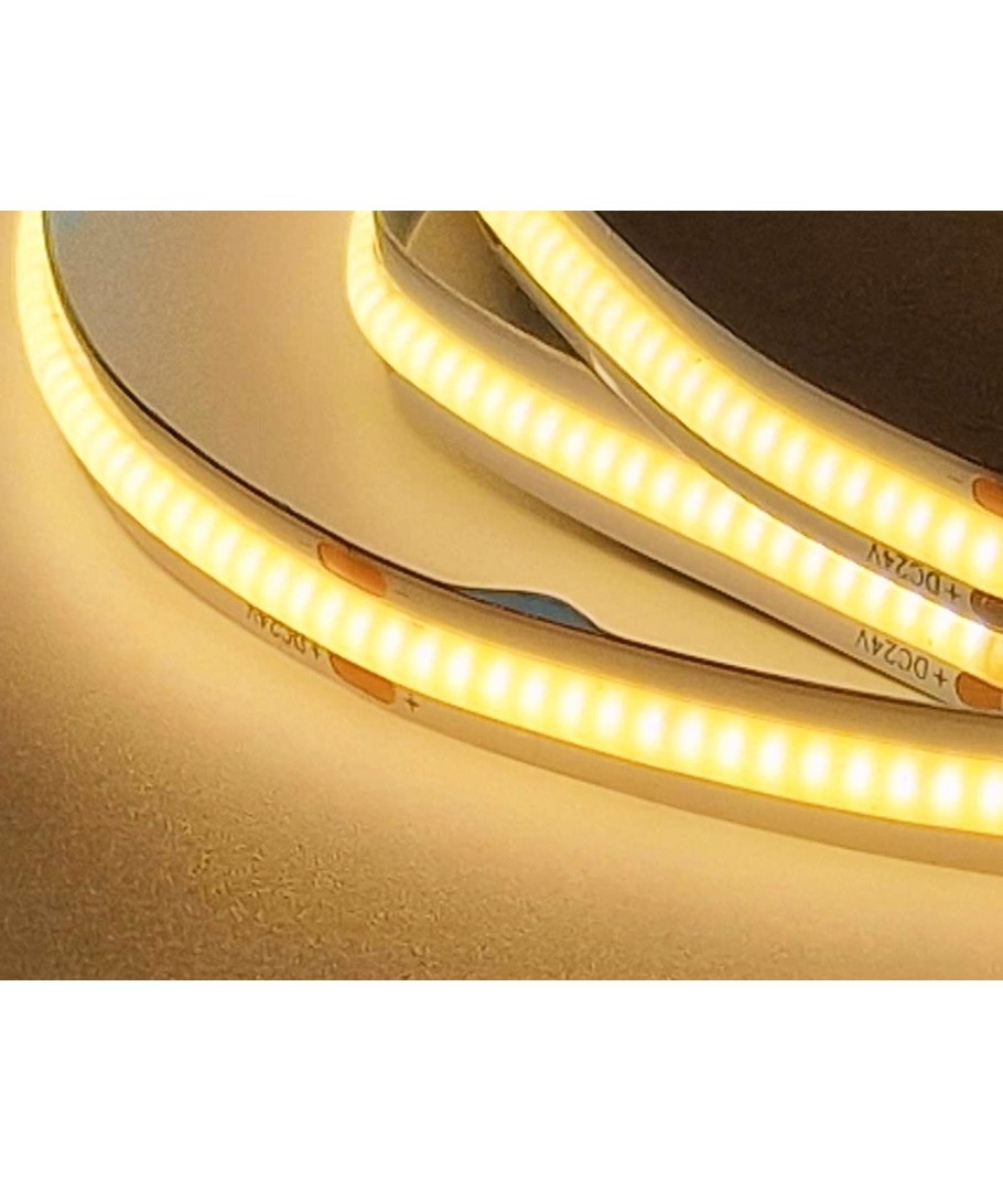Opplev magien med vår COB-LED-stripe som gir enestående lyskvalitet og fleksibilitet for alle dine belysningsbehov. Med en lysstyrke på 800 lumen per meter og en bred lysspredning på 120 grader, sikrer denne LED-stripen en jevn og behagelig fordeling av lyset.