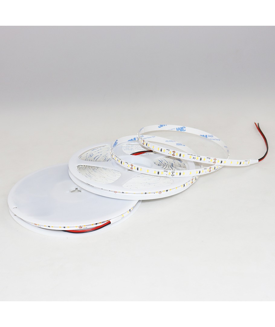 Denne LED-stripen må kobles til en 24V DC forsyning, og kan enkelt dimbart til å passe dine lysbehov. Til tross for sin kraftige ytelse, har den en smal bredde på kun 8 mm, hvilket gjør den svært diskret for montering.
