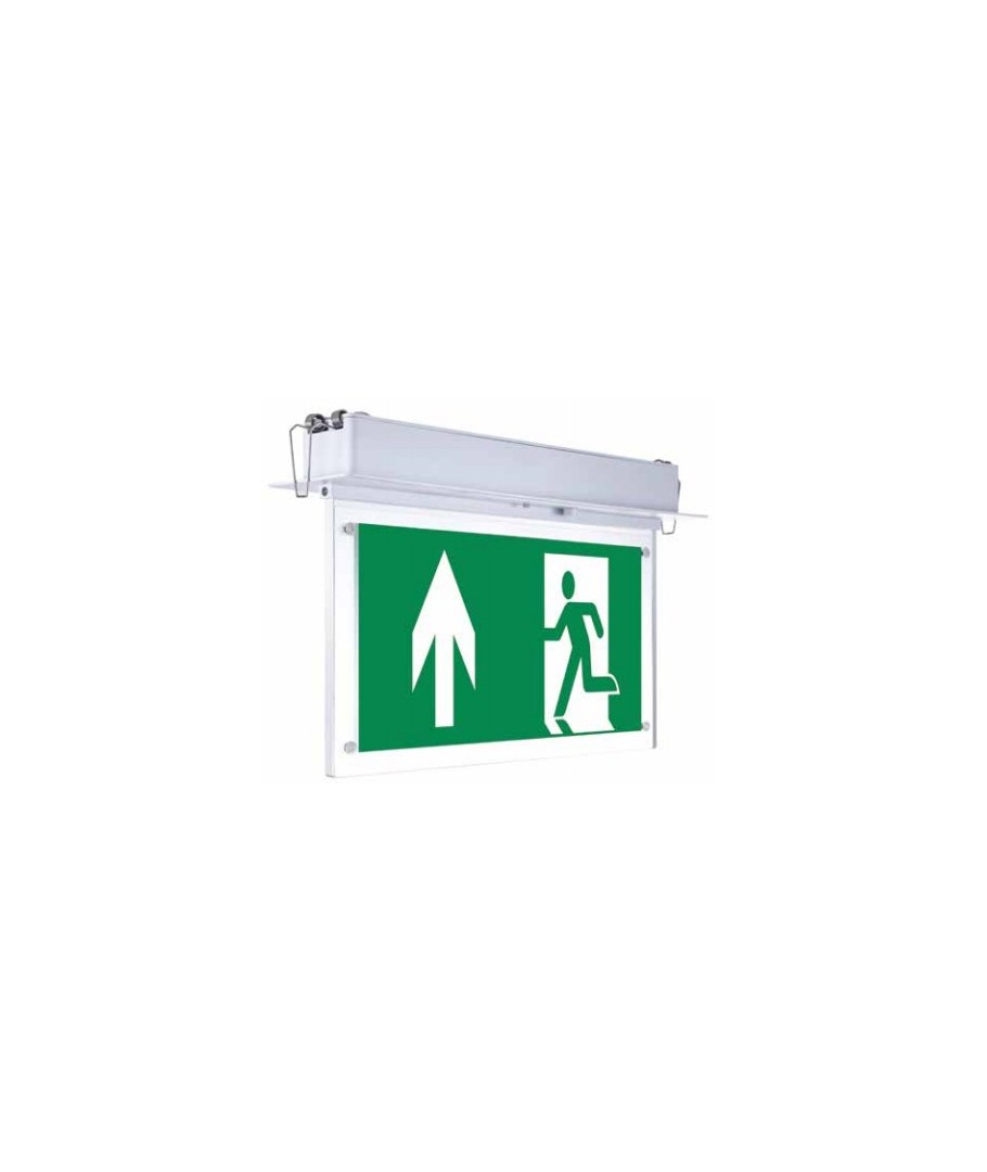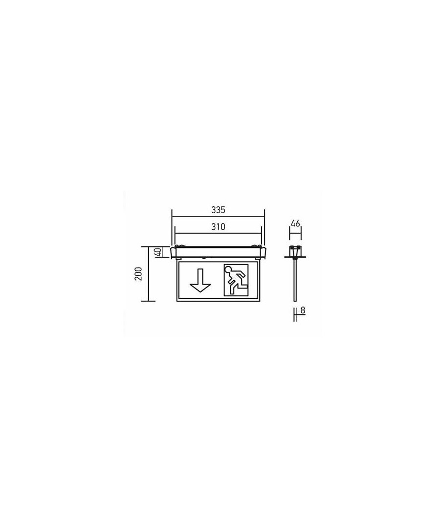 Designet med dimensjoner på 335 x 200 x 46 mm, er dette exit-skiltet både slankt og diskret, samtidig som det er tilstrekkelig stort til å være lett synlig. Det passer inn i moderne interiører uten å virke påfallende eller forstyrrende.