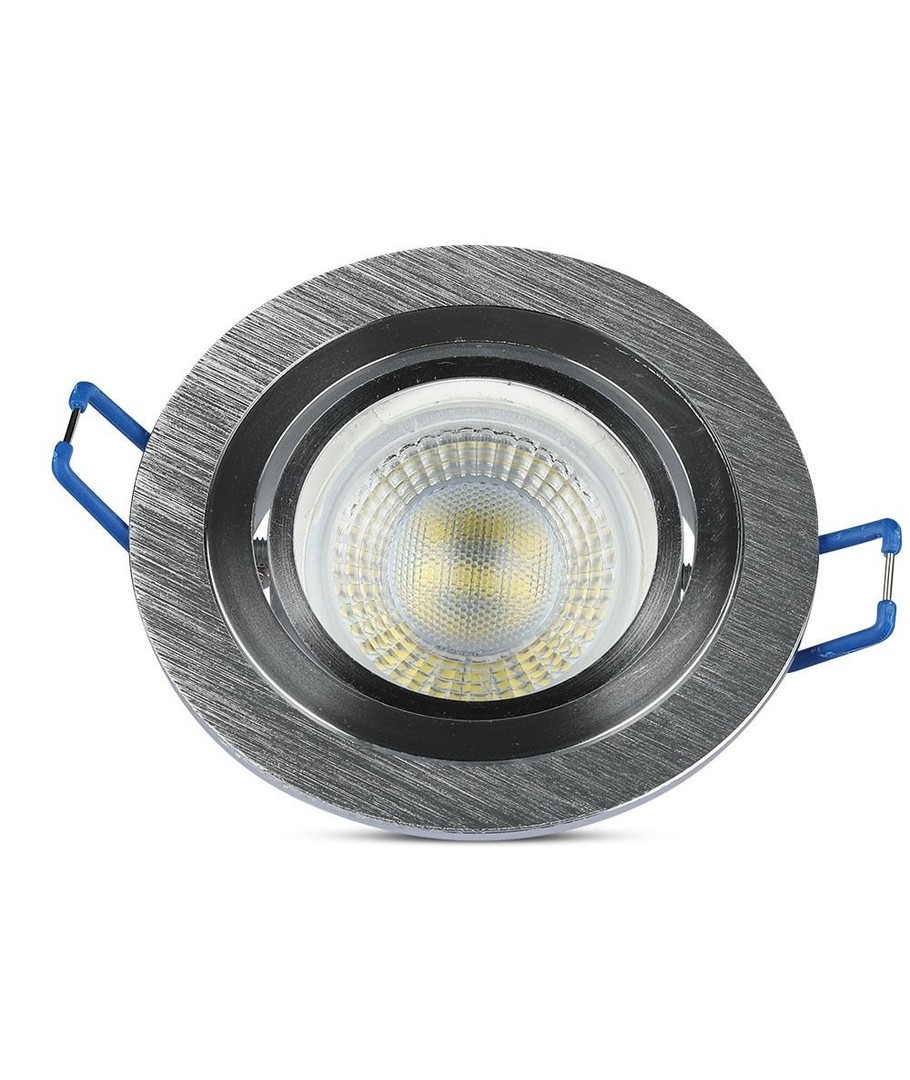 Downlight kit i børstet aluminium.