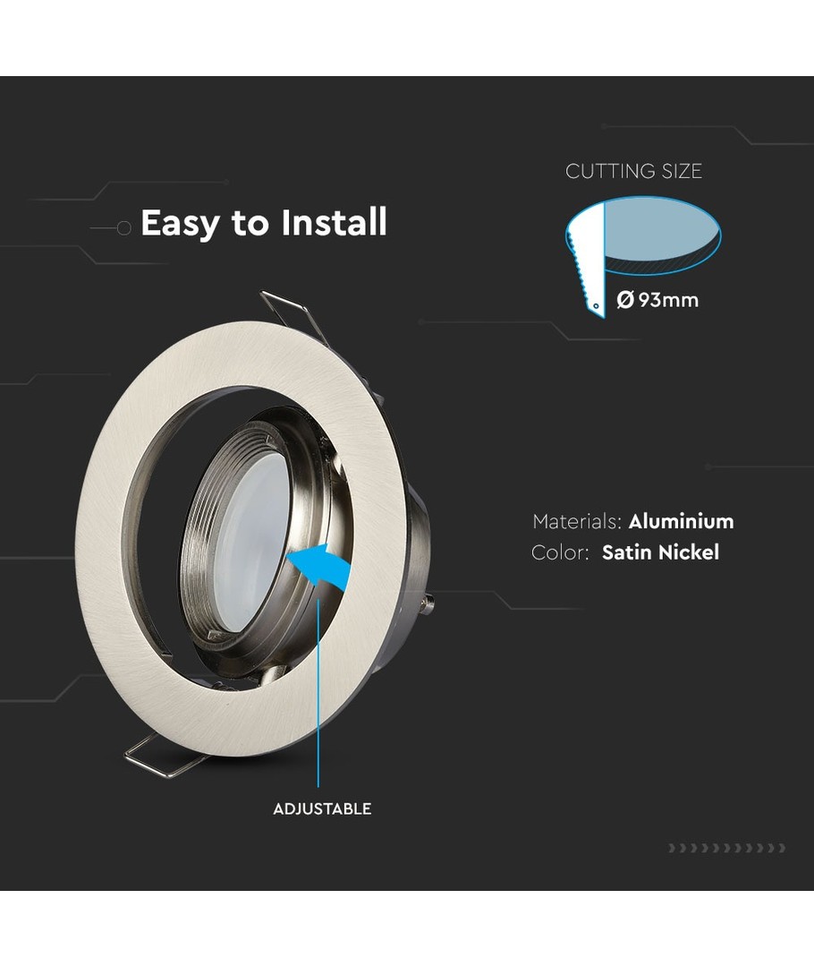 Uten lyskilde, IP20, Hull: 7,4x7,4 cm, Mål: 9,9x9,9 cm