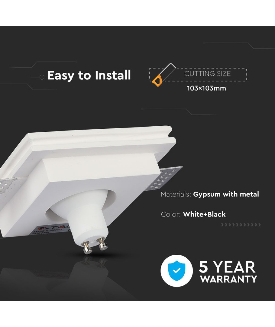 Uten lyskilde, IP20, Hull: 7,4x7,4 cm, Mål: 9,9x9,9 cm