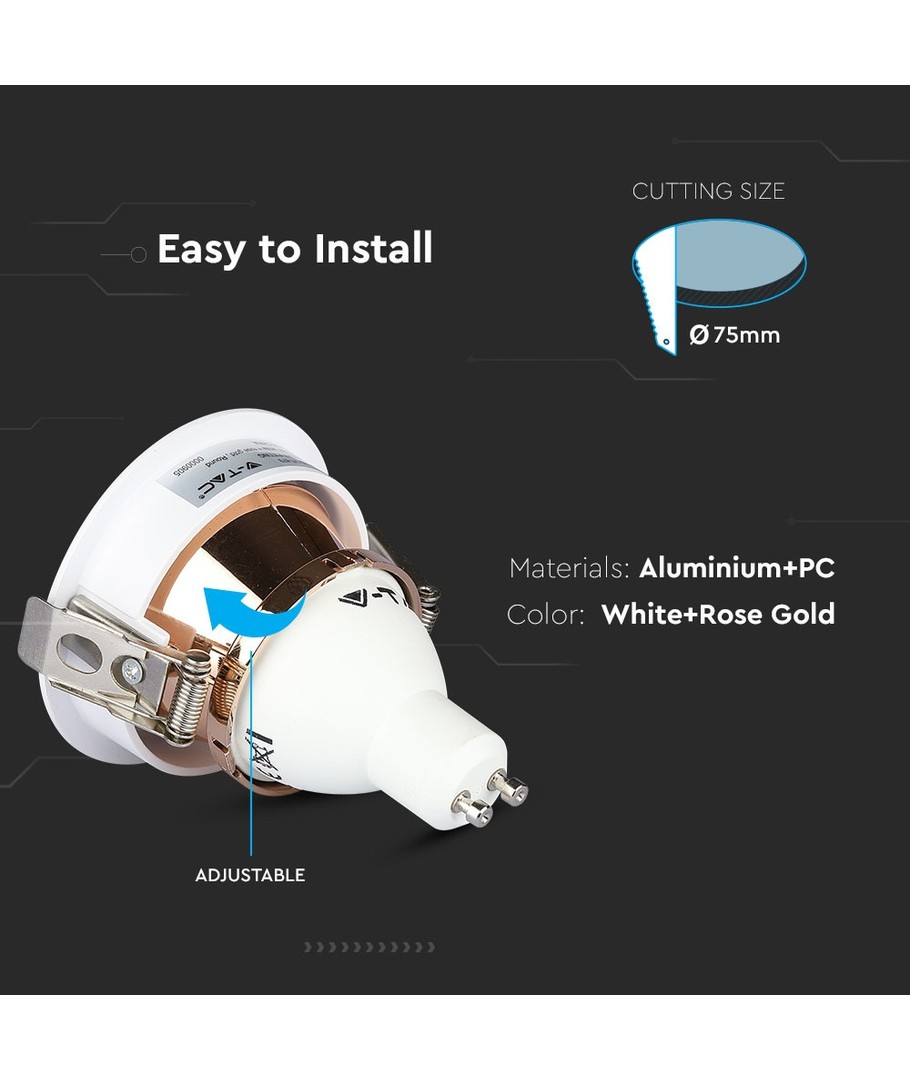 GU10 innfellingsspot - Rund, hvit og rose gold, aluminium, IP20 innendørs V-TAC Utvid