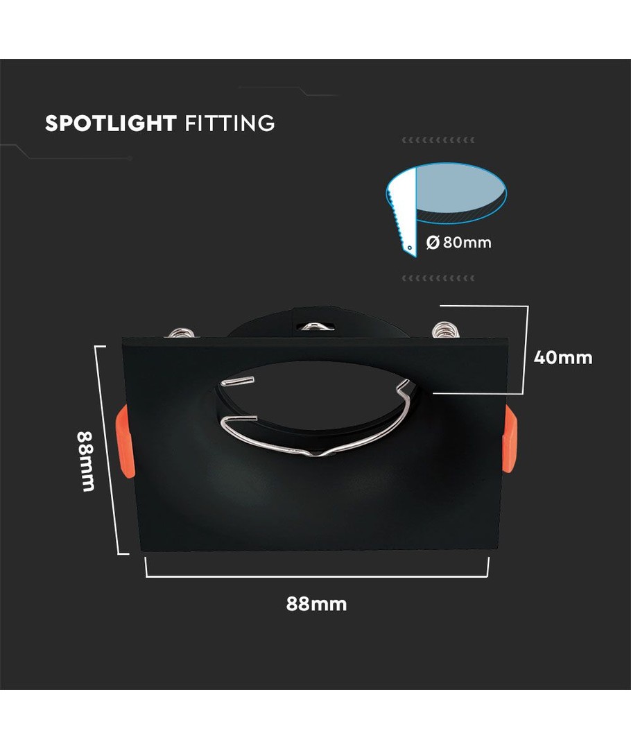 Den enkle installasjonen gjør den kvadratiske GU10 lyspæren perfekt for både hjemmebruk og kommersielle områder. Med en hul størrelse på 80 mm, passer den lett inn i de fleste standard takutførelser.